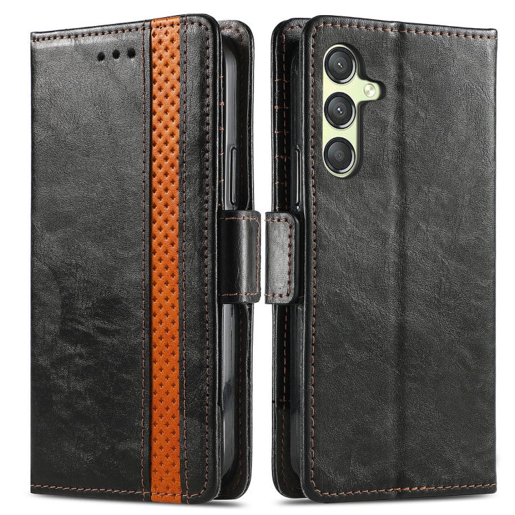 Funda de Cuero Caseneo Splicing para Samsung Galaxy A05 con Hebilla Magnética Dual (Negro)