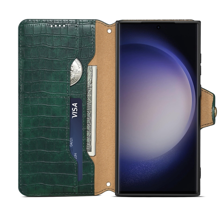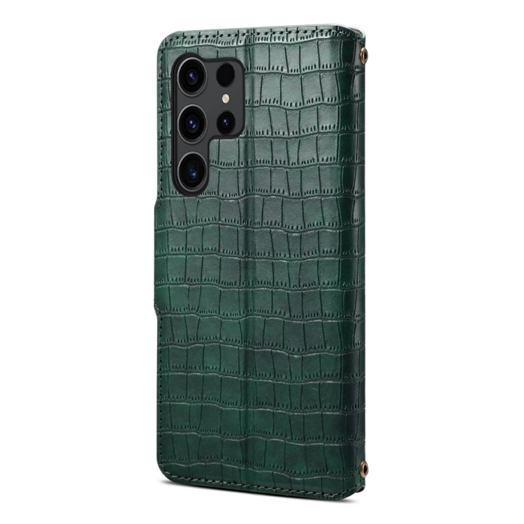 Funda para Teléfono Samsung Galaxy A05 Denior Cuero Borde de Aceite Textura Cocodrilo (Verde)