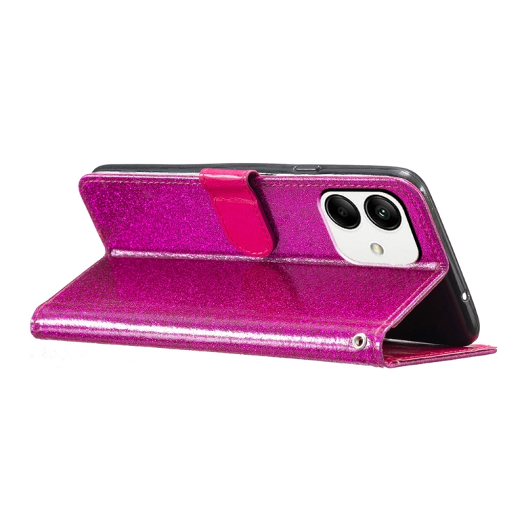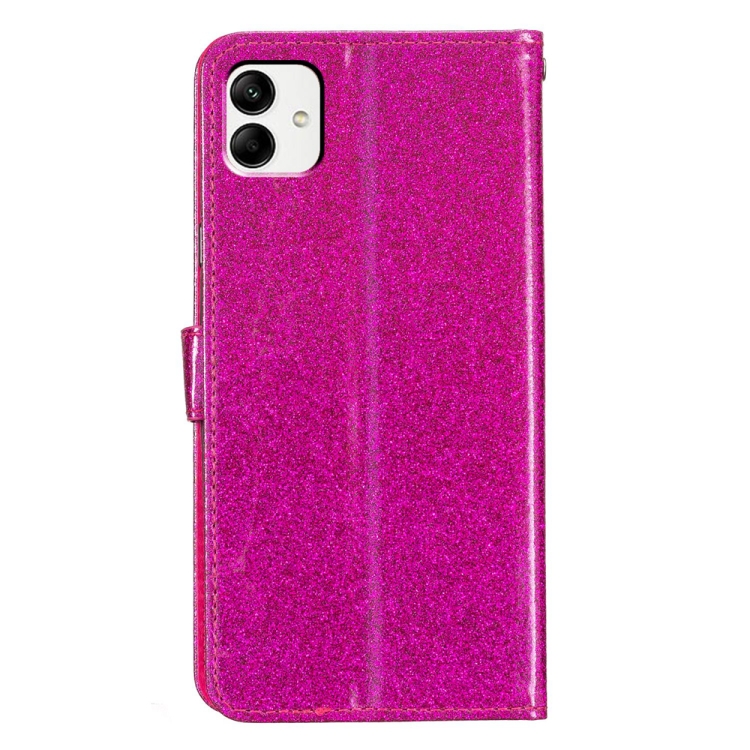 Funda de Cuero para Samsung Galaxy A05 con Tapa y Purpurina en Polvo (Rojo Rosa)