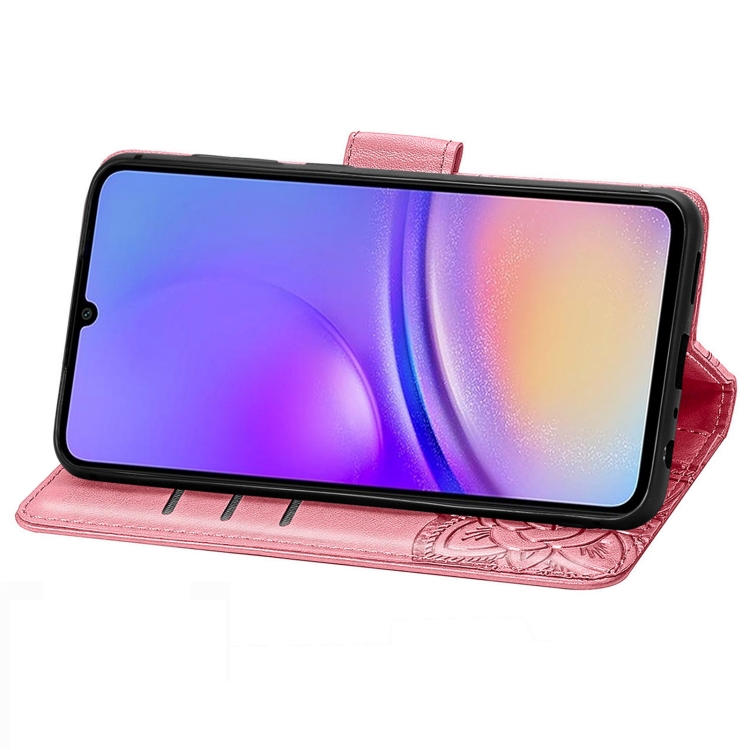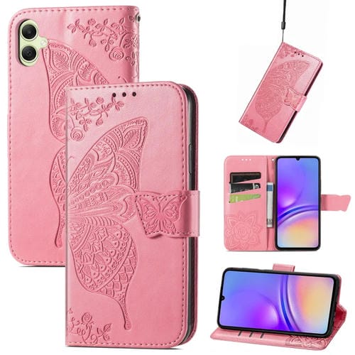 Funda para Teléfono Samsung Galaxy A05 Cuero Relieve Flor de Amor y Mariposa (Rosa)