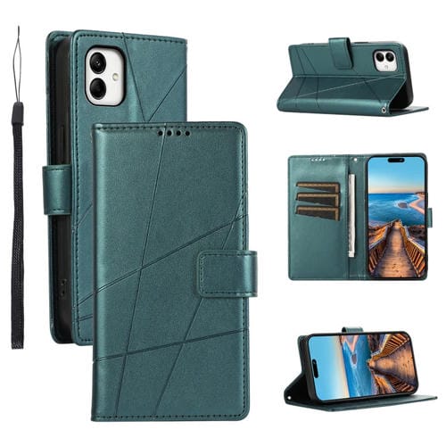 Funda para Teléfono Samsung Galaxy A05 PU con Línea en Relieve y Textura de Cuero Genuino (Verde)