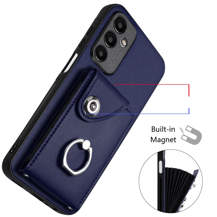 Funda para Samsung Galaxy A05S 4G con Soporte para Anillo y Bolsa para Tarjeta con Cordón Largo (Azul)