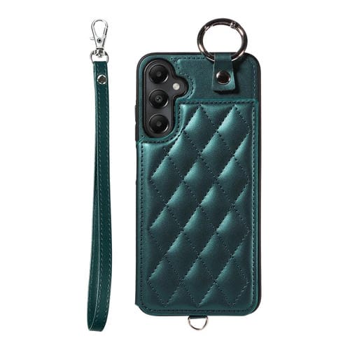 Estuche para teléfono Samsung Galaxy A05S con bolsa para tarjetas textura rómbica y cordón corto (Verde)