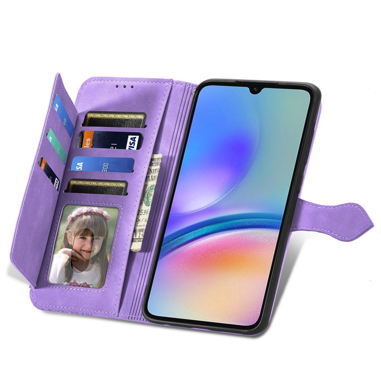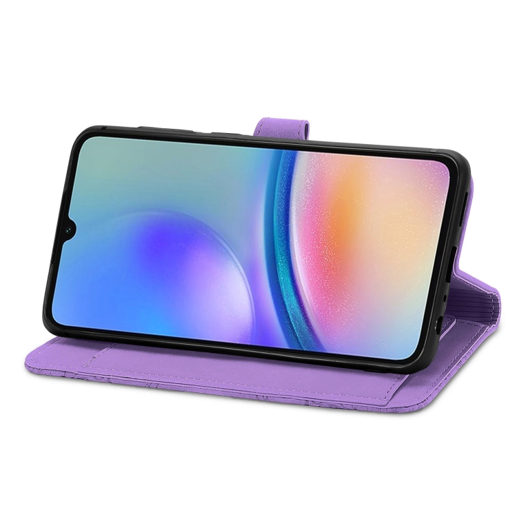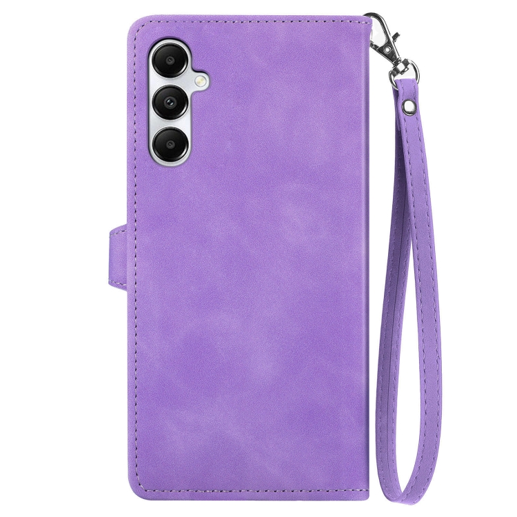 Funda para Samsung Galaxy A05S Cuero con Cremallera y Flores en Relieve (Púrpura)