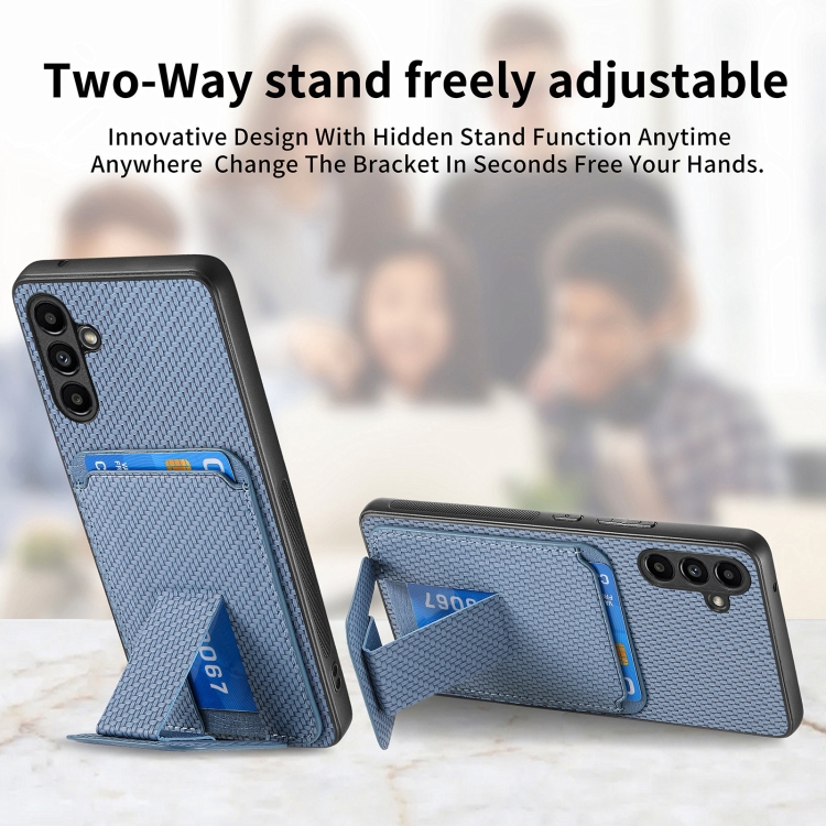 Funda para Teléfono Samsung Galaxy A05S con Soporte Plegable y Bolsa para Tarjetas de Fibra de Carbono (Azul)
