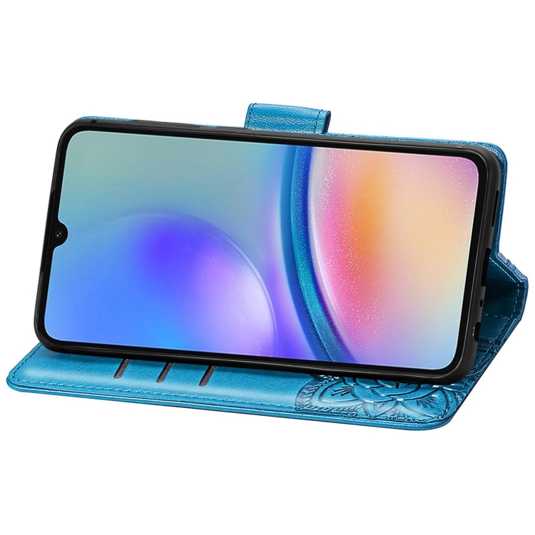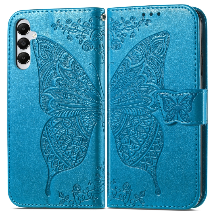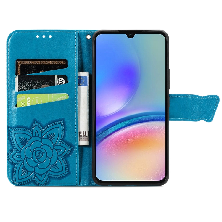 Funda para Teléfono Samsung Galaxy A05S Cuero con Relieve Flor de Amor y Mariposa (Azul)