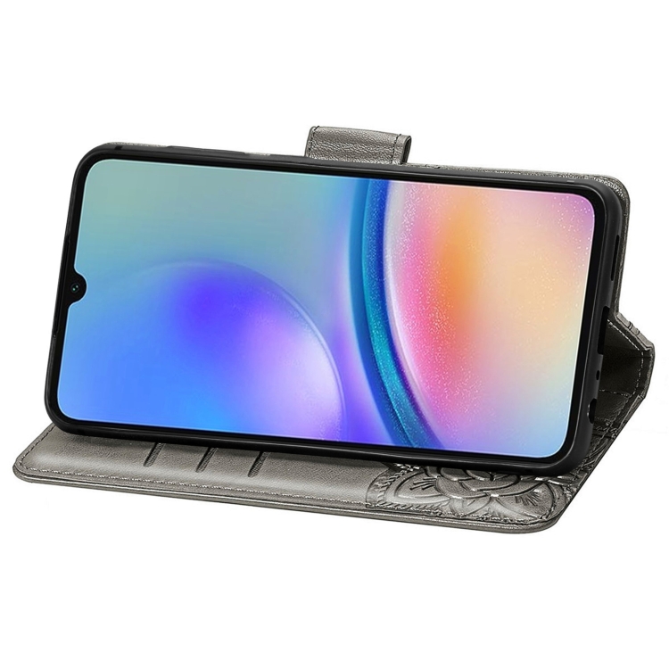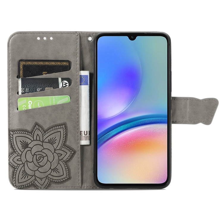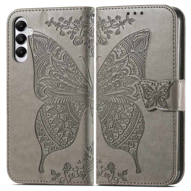 Funda para Teléfono Samsung Galaxy A05S Cuero Relieve Flor de Amor y Mariposa (Gris)