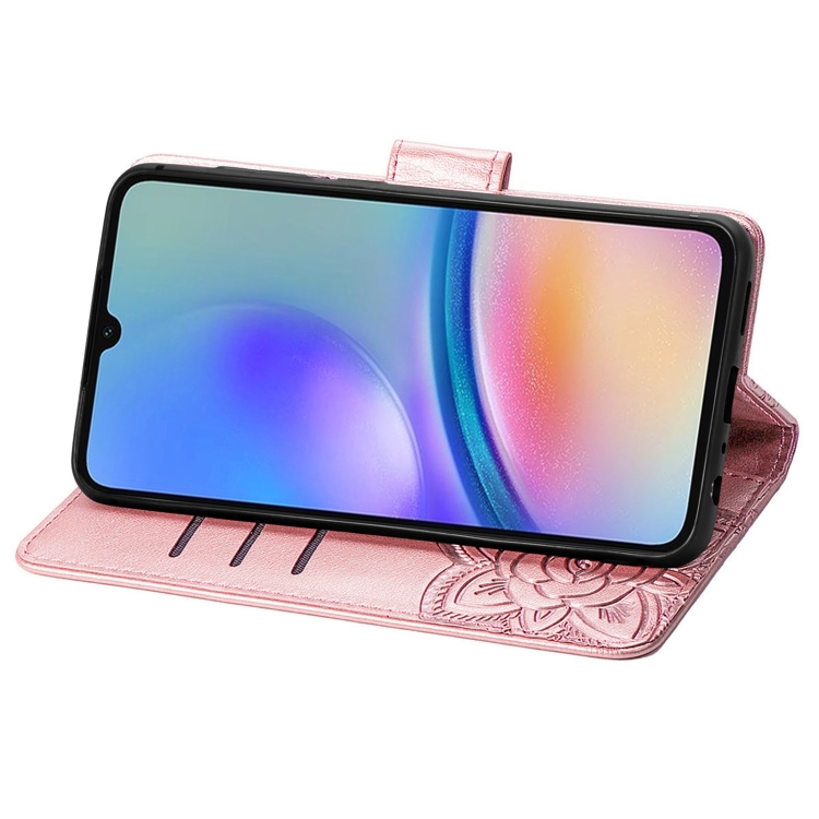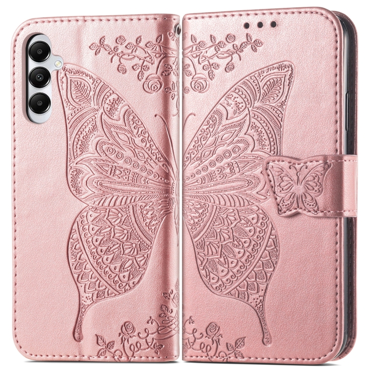 Funda para Teléfono Samsung Galaxy A05S Cuero Relieve Flor Amor y Mariposa (Oro Rosa)