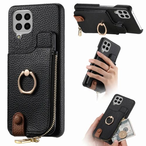 Funda para Teléfono Samsung Galaxy A12 5G Litchi Leather Oil Edge Ring Zipper Wallet (Negro)