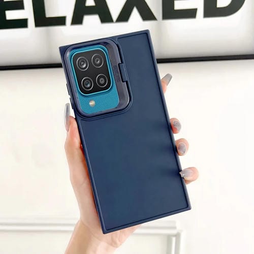Estuche para Teléfono Samsung Galaxy A12 con Soporte y Marco de Lente a Prueba de Golpes (Azul)