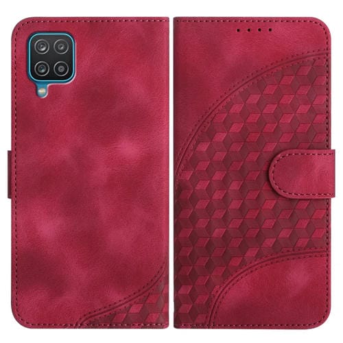 Funda para Samsung Galaxy A12 Yx0060 Cuero Relieve Cabeza de Elefante con Cordón (Rojo Rosa)