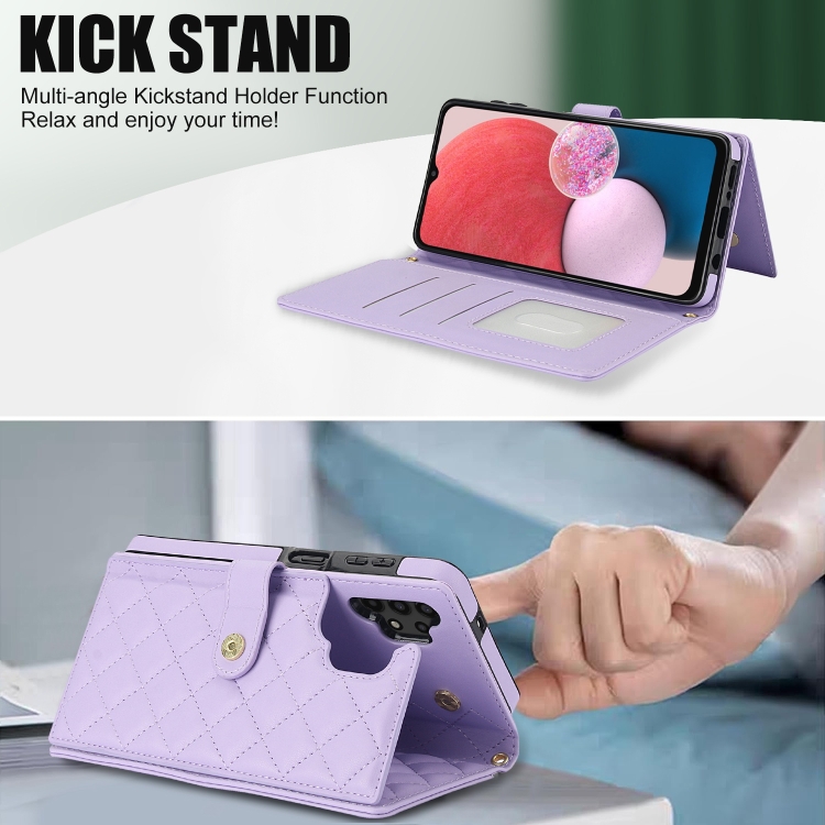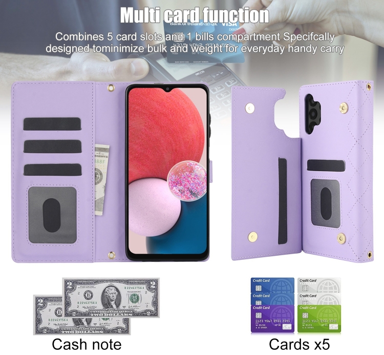 Estuche cruzado de cuero para Samsung Galaxy A13 4G y 5G multifunción (Púrpura)