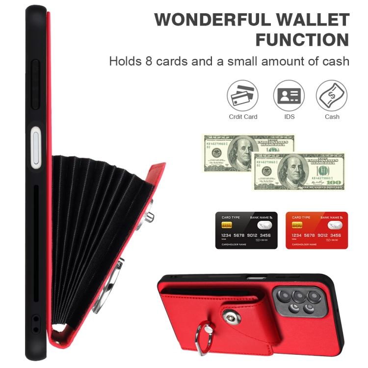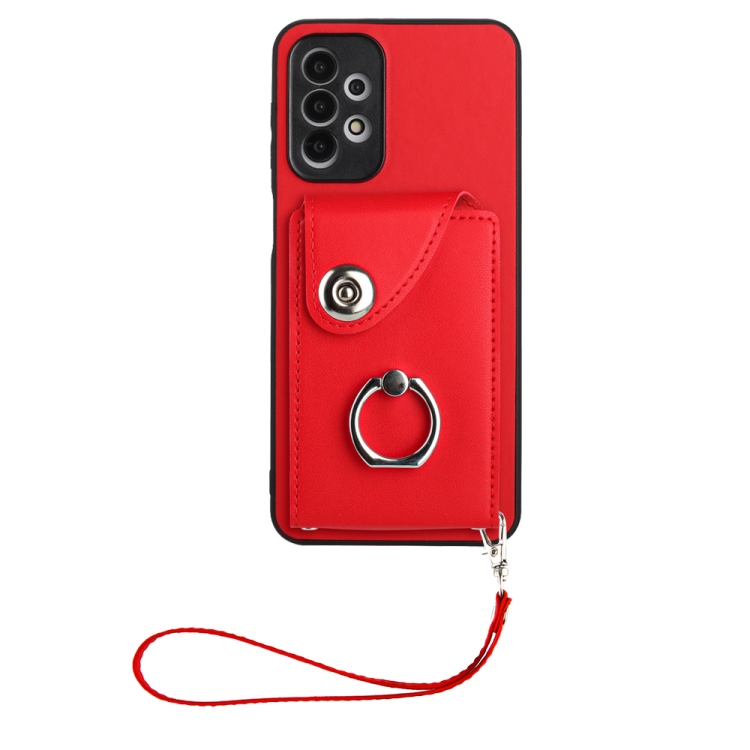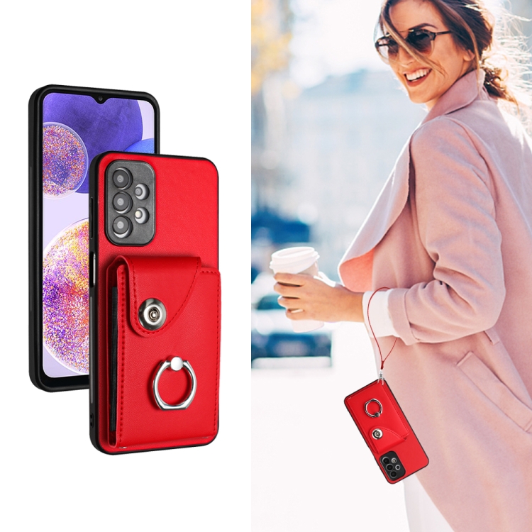 Funda para Teléfono Samsung Galaxy A13 4G Pu con Soporte para Anillo y Bolsa para Tarjeta con Cordón (Rojo)