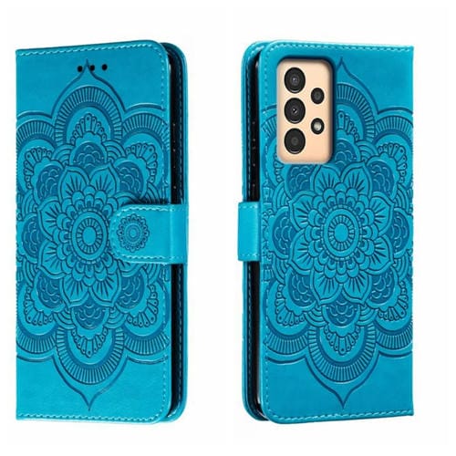 Funda de Cuero Samsung Galaxy A13 Sun Mandala con Patrón en Relieve (Azul)