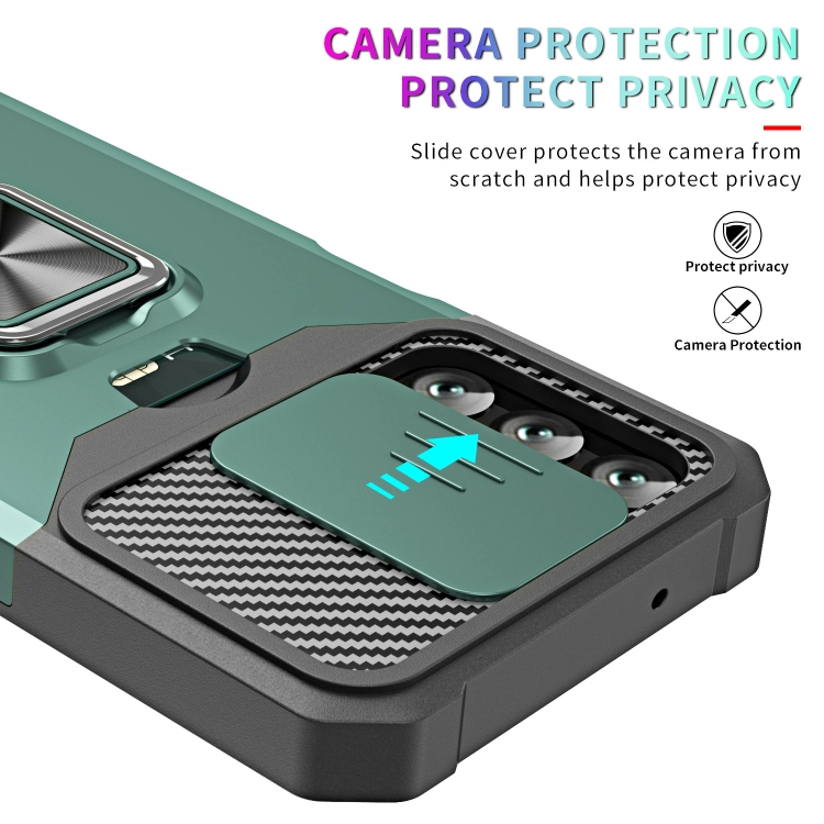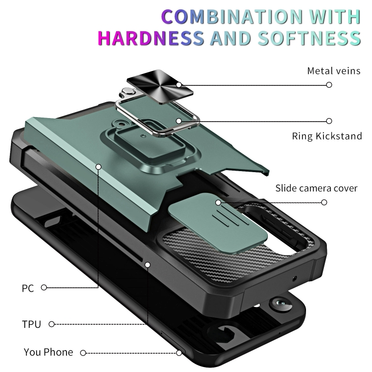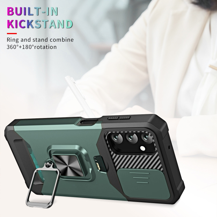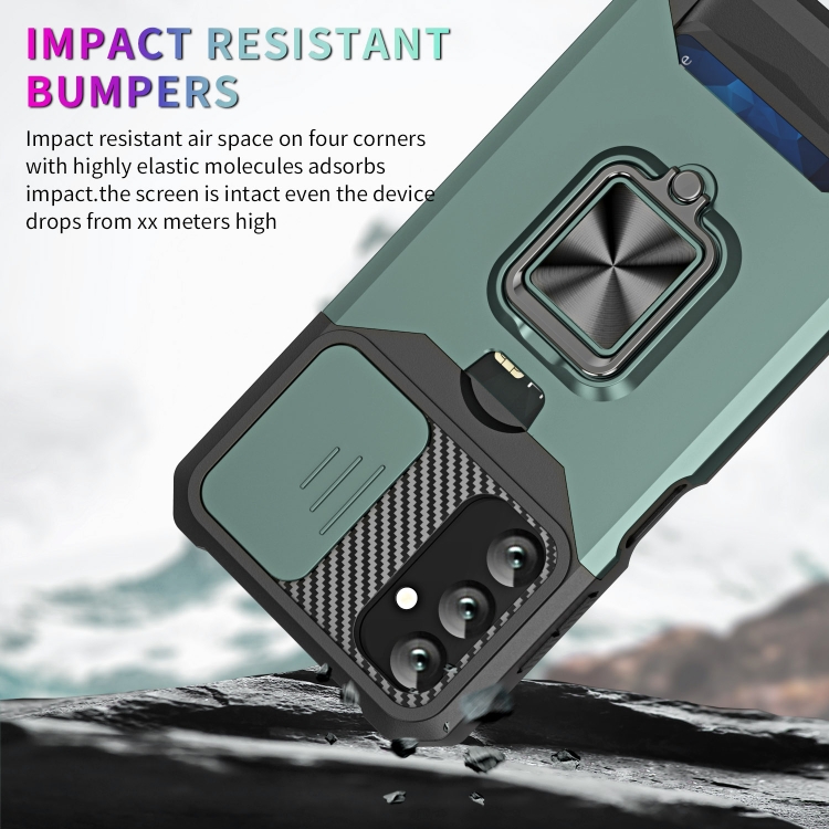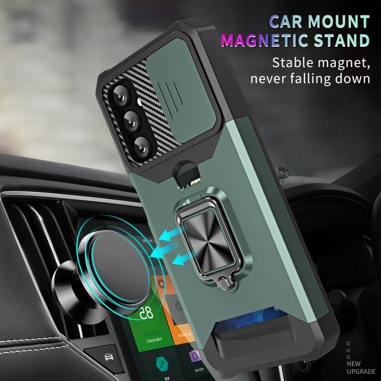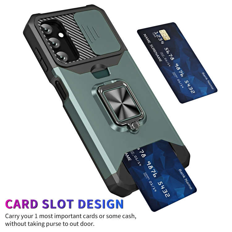 Funda para Samsung Galaxy A14 5G Camshield con Soporte para Anillo y Ranura para Tarjeta (Verde)