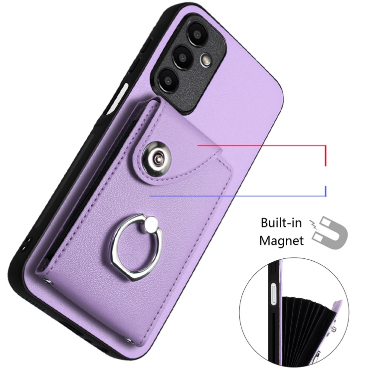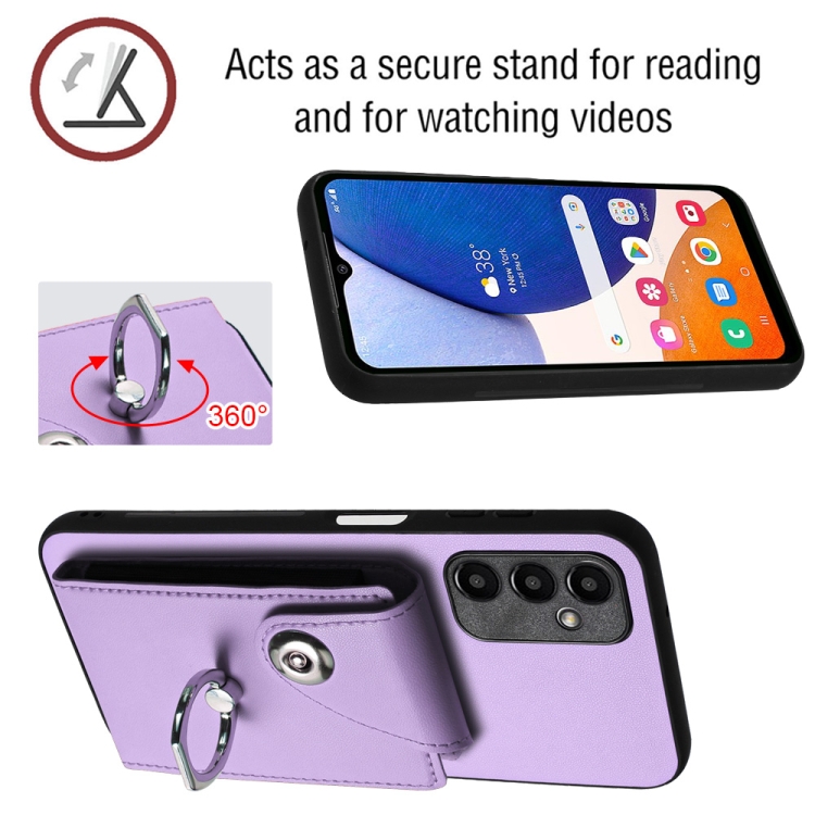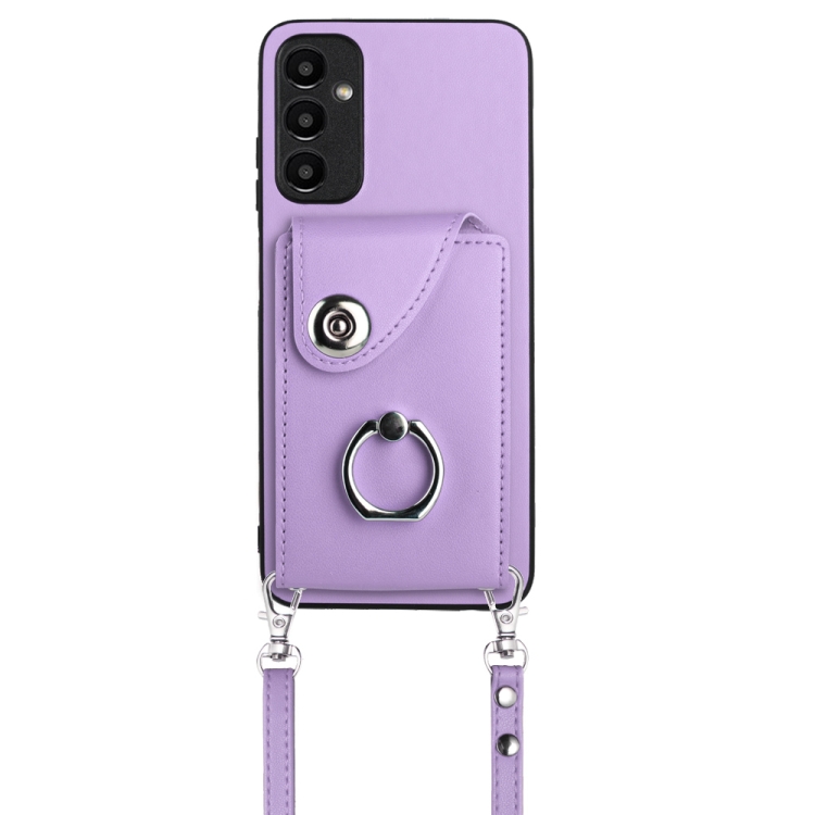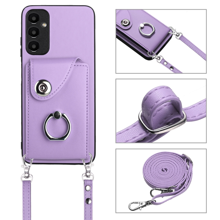 Funda para Teléfono Samsung Galaxy A14 5G con Soporte para Anillo y Bolsa para Tarjeta con Cordón Largo (Púrpura)