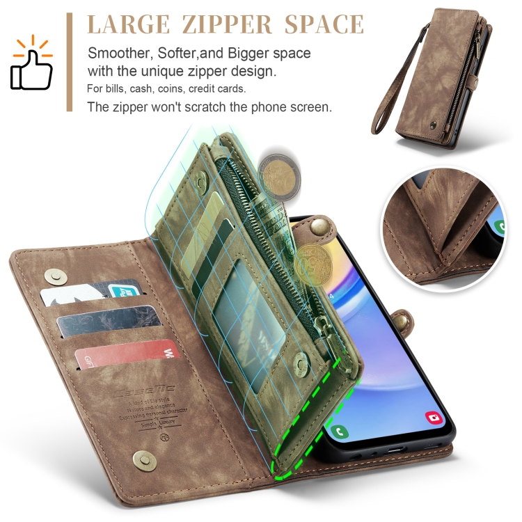 Funda para Samsung Galaxy A15 5G Caseme 008 Cuero con Billetera, Cremallera y Cordón (Marrón)