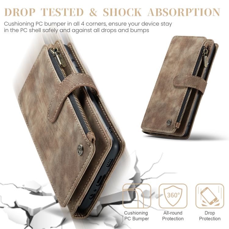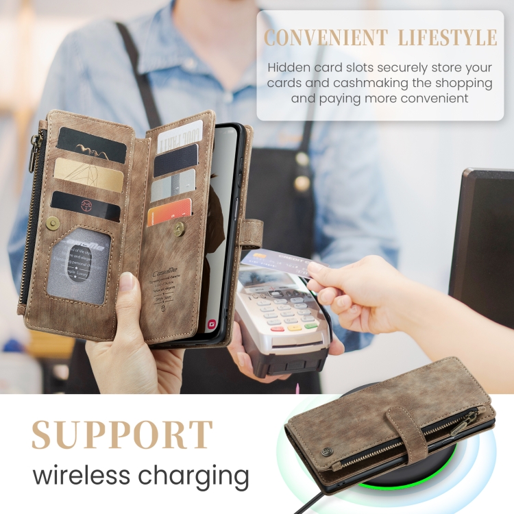 Funda para Teléfono Caseme C30 para Samsung Galaxy A15 con Billetera, Cremallera y Ranuras para Tarjetas (Marrón)