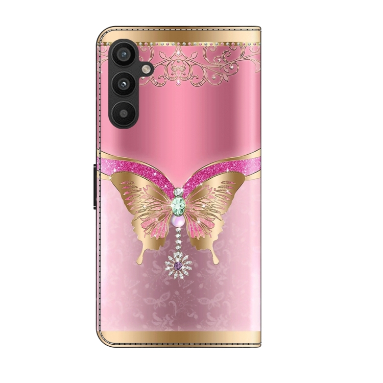 Funda Protectora Samsung Galaxy A15 Crystal 3D Cuero a Prueba de Golpes (Mariposa Inferior Rosa)