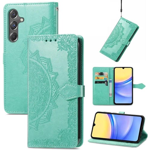 Funda para Teléfono Samsung Galaxy A15 Cuero Relieve Flores Mandala (Verde)