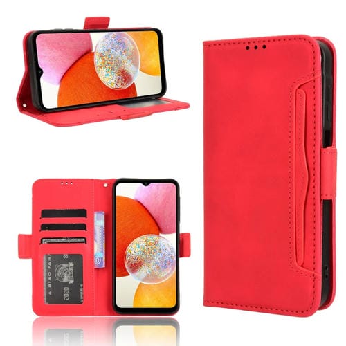 Funda para Samsung Galaxy A15 Skin Feel Becerro Textura Ranuras para Tarjetas Cuero (Rojo)
