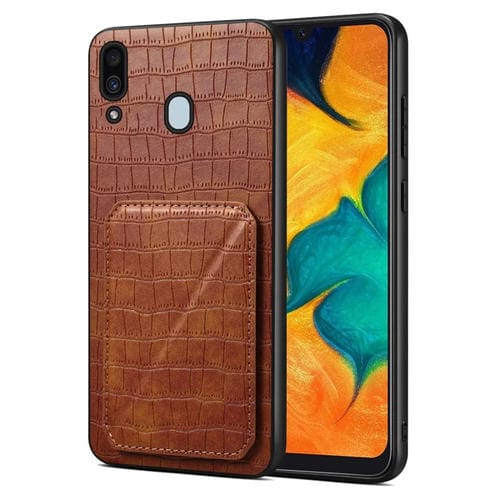 Funda Trasera Denior para Samsung Galaxy A20 y A30 Piel de Cocodrilo con Soporte (Marrón)