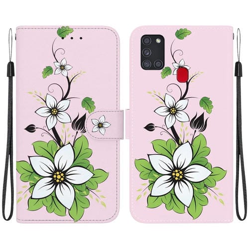Funda para Teléfono Samsung Galaxy A21S Cuero Dibujo Coloreado Textura de Cristal (Lirio)