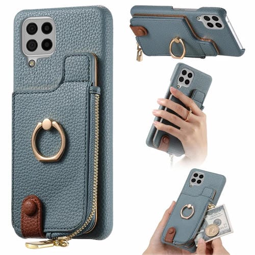 Funda para Samsung Galaxy A22 4G Litchi Leather Oil Edge Ring Zipper Wallet Back (Azul)
