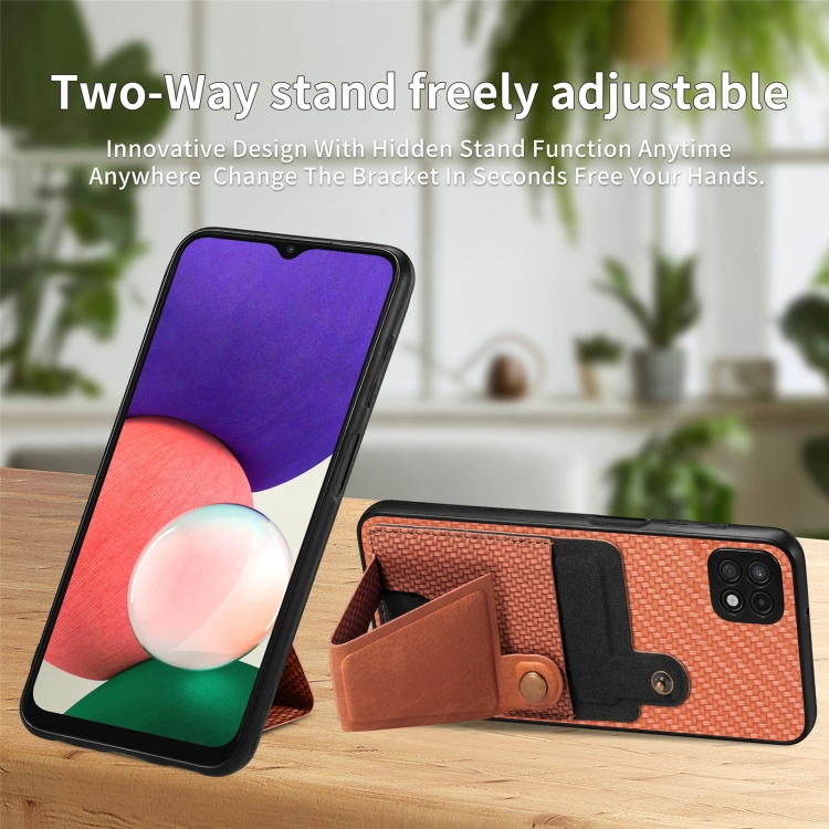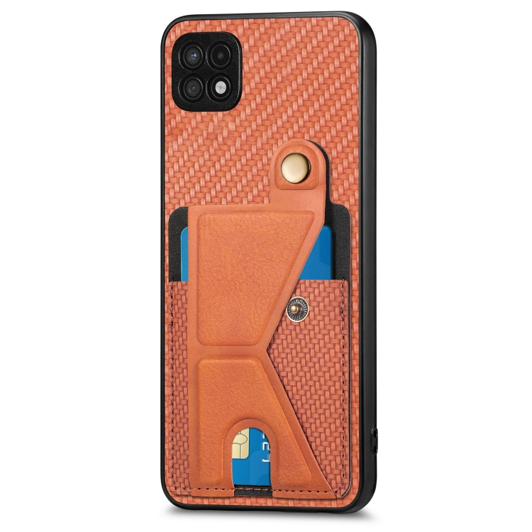 Funda Cartera para Samsung Galaxy A22 5G Fibra de Carbono Flip Card con Soporte en Forma de K (Marrón)