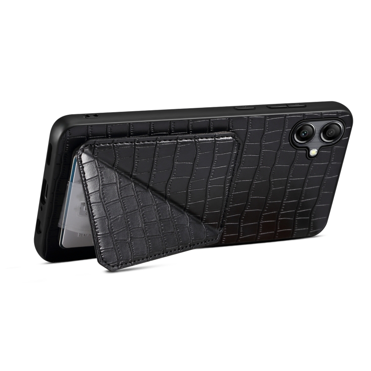 Funda Trasera Samsung Galaxy A22 5G Denior Piel de Cocodrilo de Imitación con Soporte (Negro)