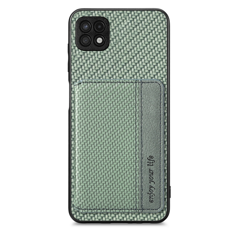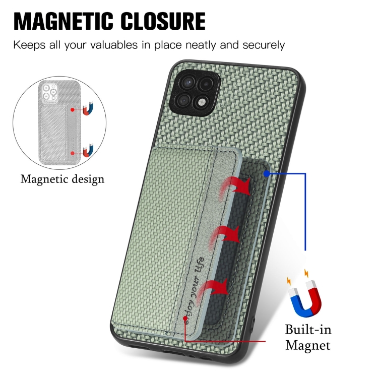 Para Samsung Galaxy A22 5G Fibra de Carbono Tarjeta Magnética Monedero Bolsa Teléfono (Verde)
