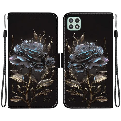 Funda para teléfono Samsung Galaxy A22 5G Cuero Dibujo Coloreado Textura de Cristal (Rosa Negra)