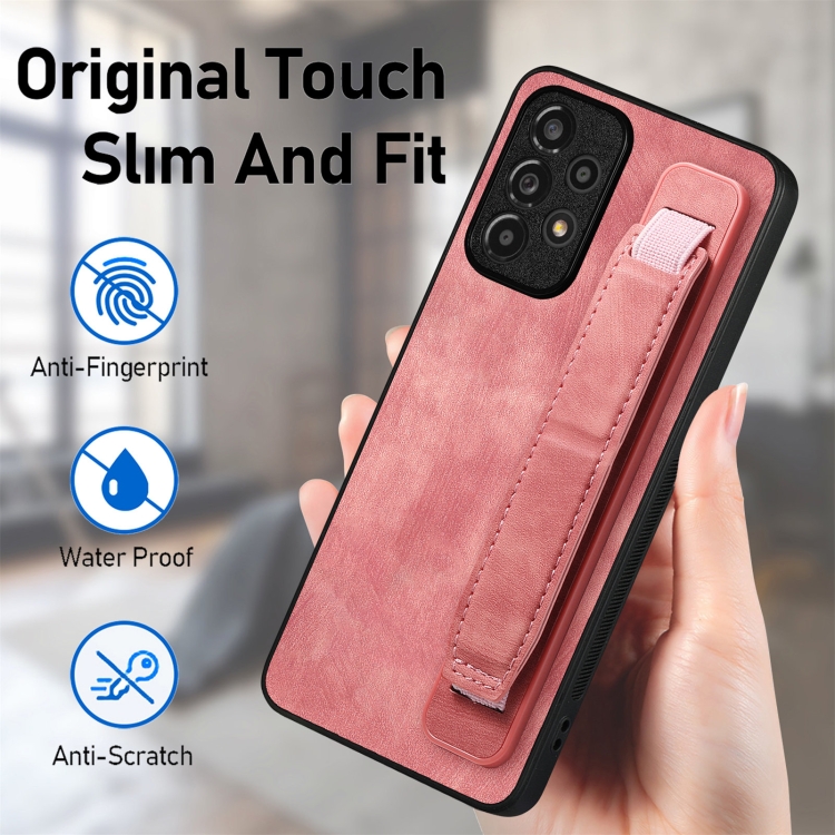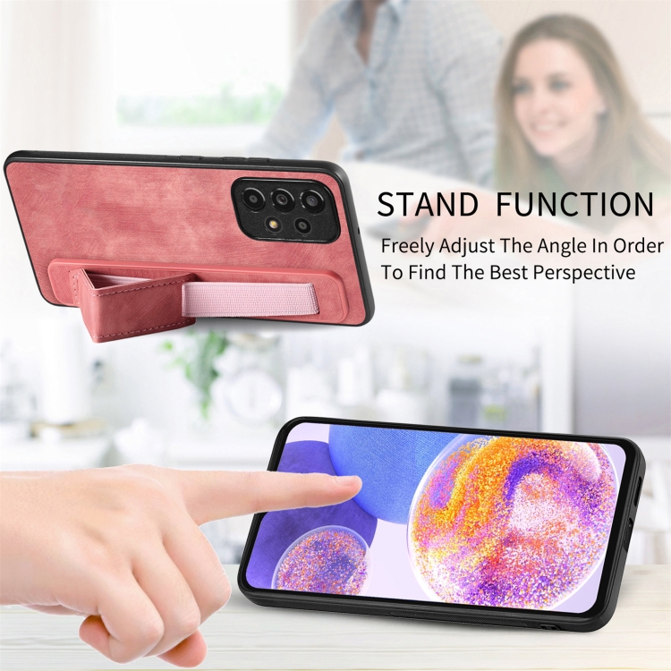 Funda Trasera para Samsung Galaxy A23 Cuero con Soporte para Pulsera Retro (Rosa)