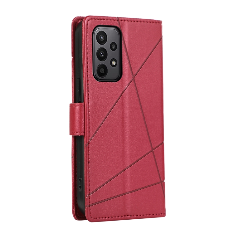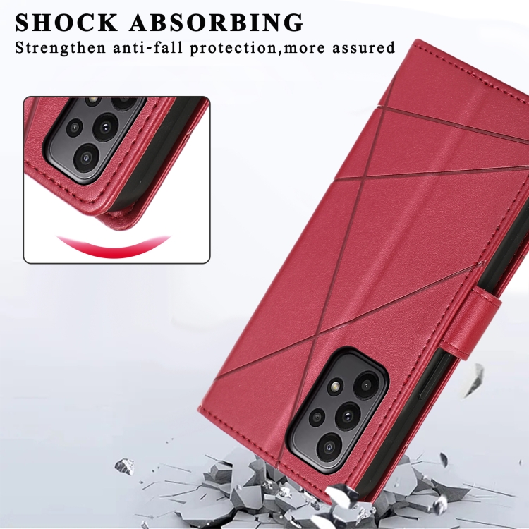 Funda para Teléfono Samsung Galaxy A23 con Línea en Relieve Textura de Cuero Genuino (Rojo)