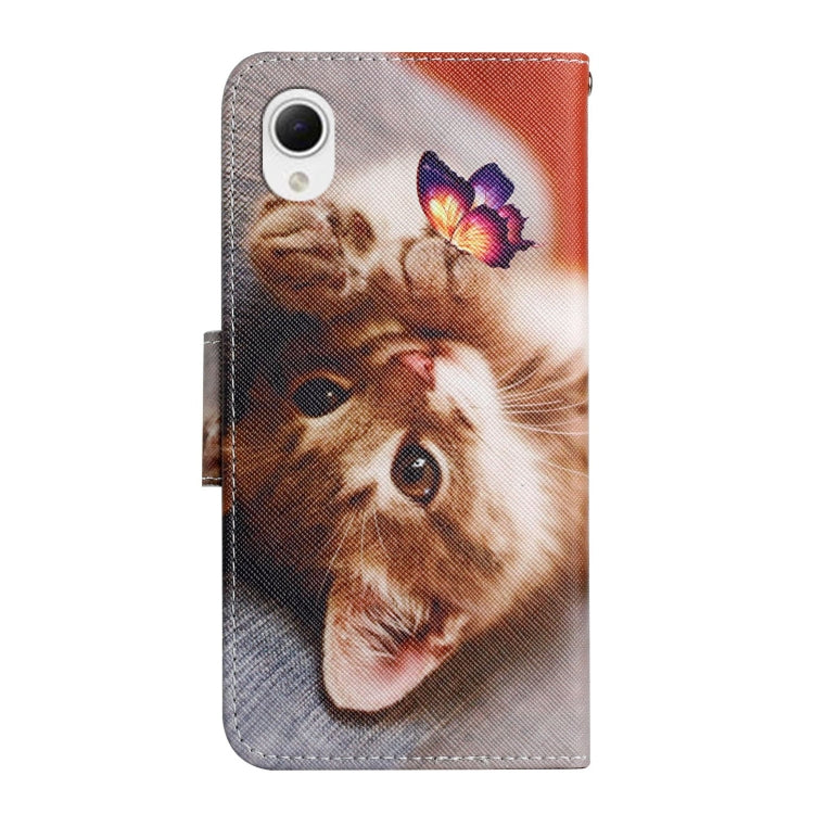 Estuche de Teléfono Samsung Galaxy A23E Cuero con Patrón Dibujo Coloreado (Gato Mariposa)
