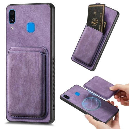 Funda de Teléfono Samsung Galaxy A30 A20 M10S Magnética con Bolsa de Tarjeta Cuero Retro (Púrpura)