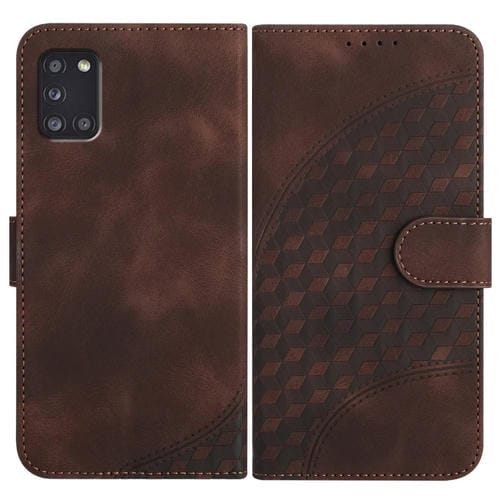 Funda para Teléfono Samsung Galaxy A31 Yx0060 Cuero Relieve Cabeza de Elefante con Cordón (Café)