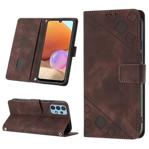 Estuche para Teléfono Samsung Galaxy A32 4G Cuero En Relieve con Tacto de Piel (Marrón)