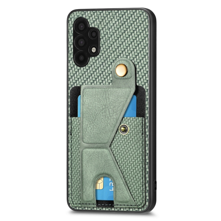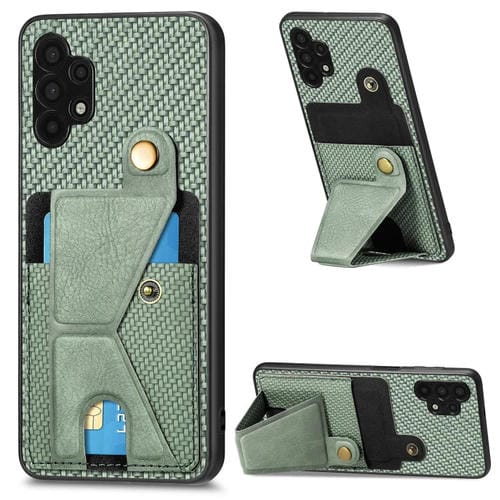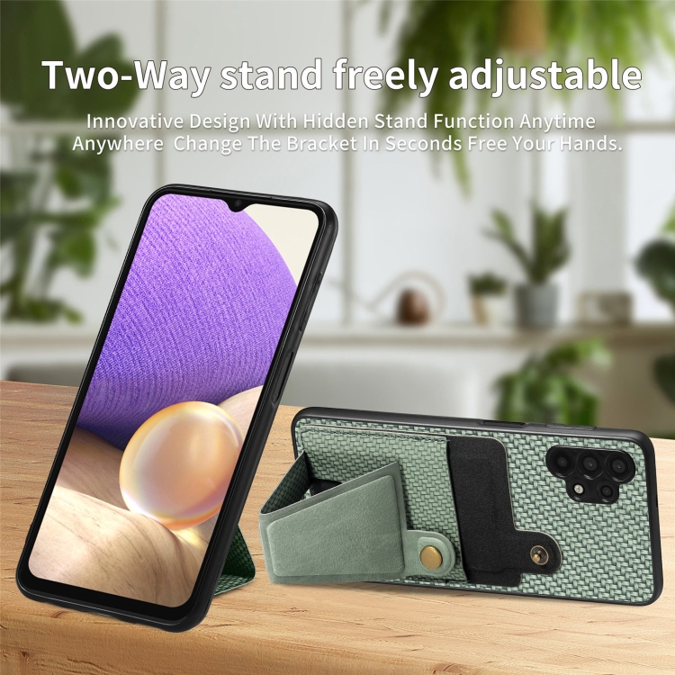Funda Cartera para Samsung Galaxy A32 5G Fibra de Carbono Flip Card con Soporte en Forma de K (Verde)