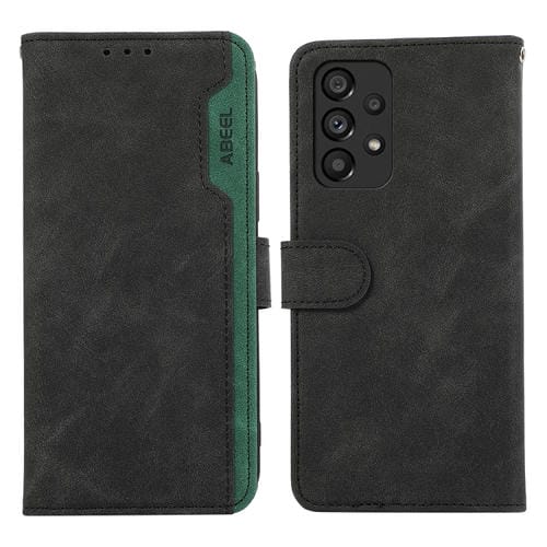 Funda de Cuero Abeel para Samsung Galaxy A33 5G Color Block Magnética Rfid (Negro-Verde)