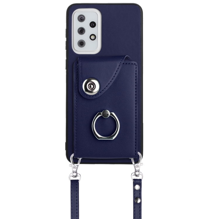 Funda para Teléfono Samsung Galaxy A33 5G con Soporte Anillo y Bolsa para Tarjeta con Cordón Largo (Azul)