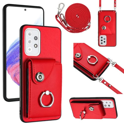 Funda para Teléfono Samsung Galaxy A33 5G con Soporte para Anillo y Bolsa para Tarjeta con Cordón Largo (Rojo)