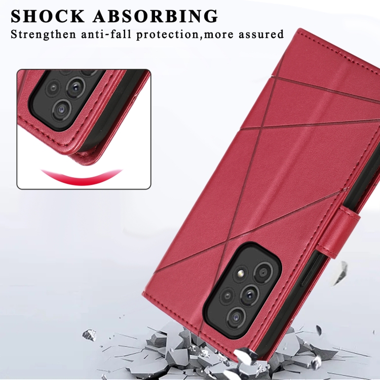 Funda para Teléfono Samsung Galaxy A33 5G PU Cuero Genuino Textura Línea En Relieve (Rojo)