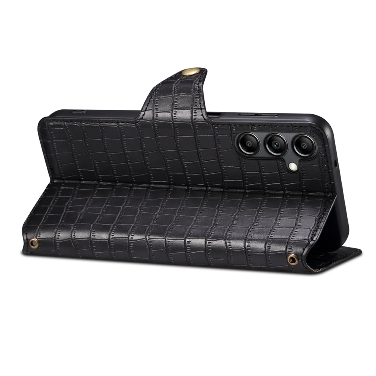 Funda para Teléfono Samsung Galaxy A34 5G Denior Cuero Borde de Aceite Textura Cocodrilo (Negro)