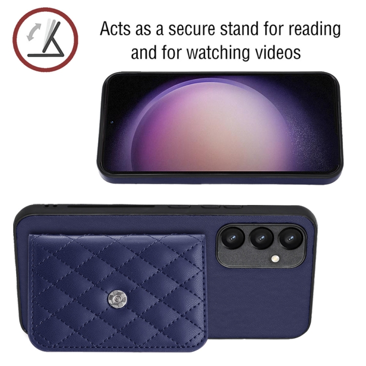 Funda para Teléfono Samsung Galaxy A34 5G Rfid con Bolsa para Tarjetas Textura Rómbica y Cordón Largo (Púrpura Oscuro)