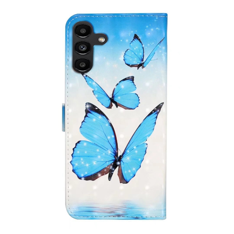 Funda de Cuero Samsung Galaxy A35 5G Dibujo 3D Relieve al Óleo (3 Mariposas)