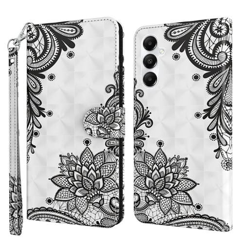 Funda de Teléfono Samsung Galaxy A35 5G Cuero con Tapa Patrón Pintura 3D (Flor Negra Diagonal)