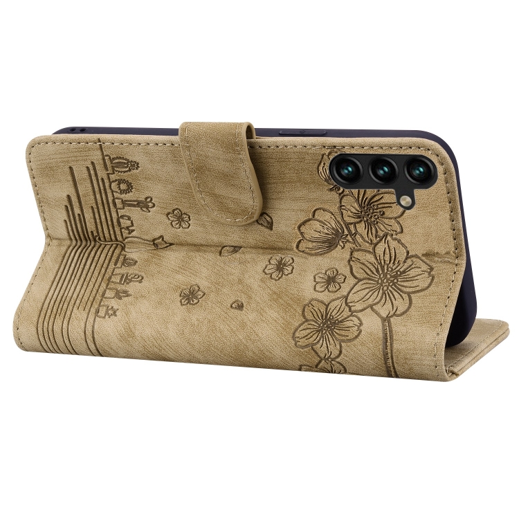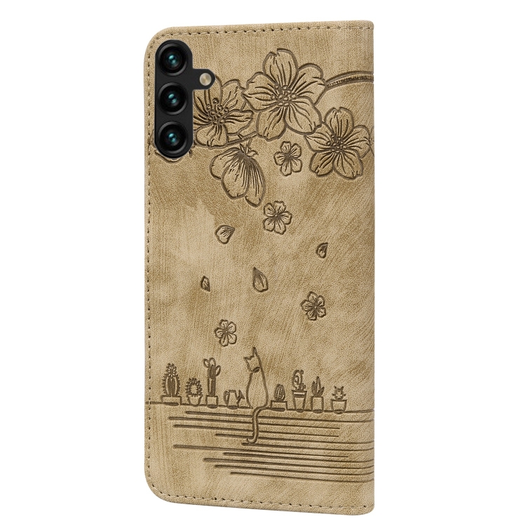 Funda para Teléfono Samsung Galaxy A35 5G Cuero Relieve Gato Sakura (Marrón)