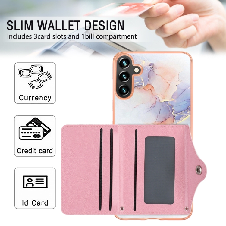 Estuche para Teléfono Samsung Galaxy A35 con Ranura para Tarjeta IMD con Patrón de Mármol (Blanco)