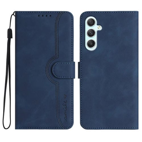 Funda de Cuero Samsung Galaxy A35 Sensación de Piel Patrón de Corazón (Azul Real)